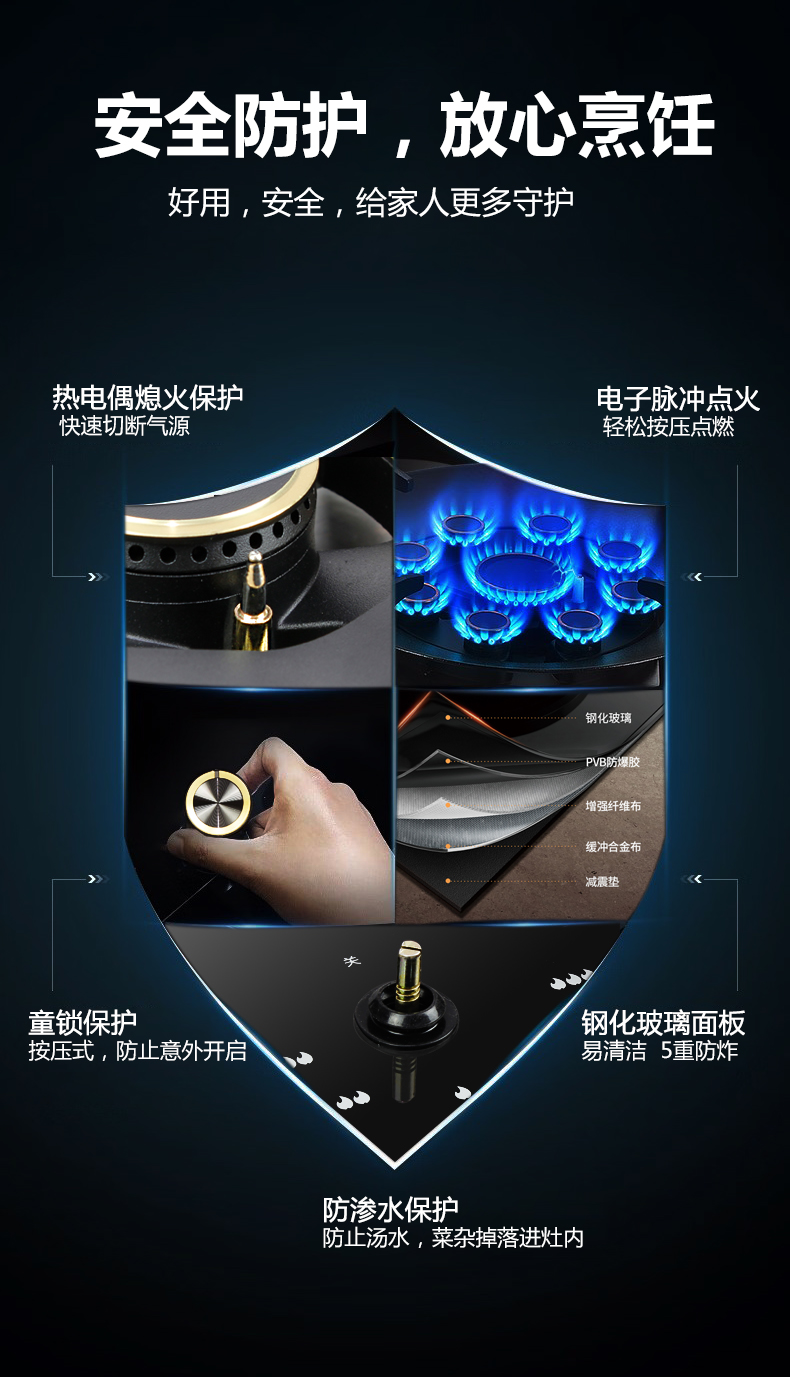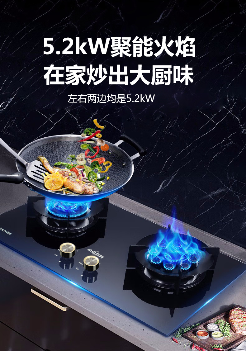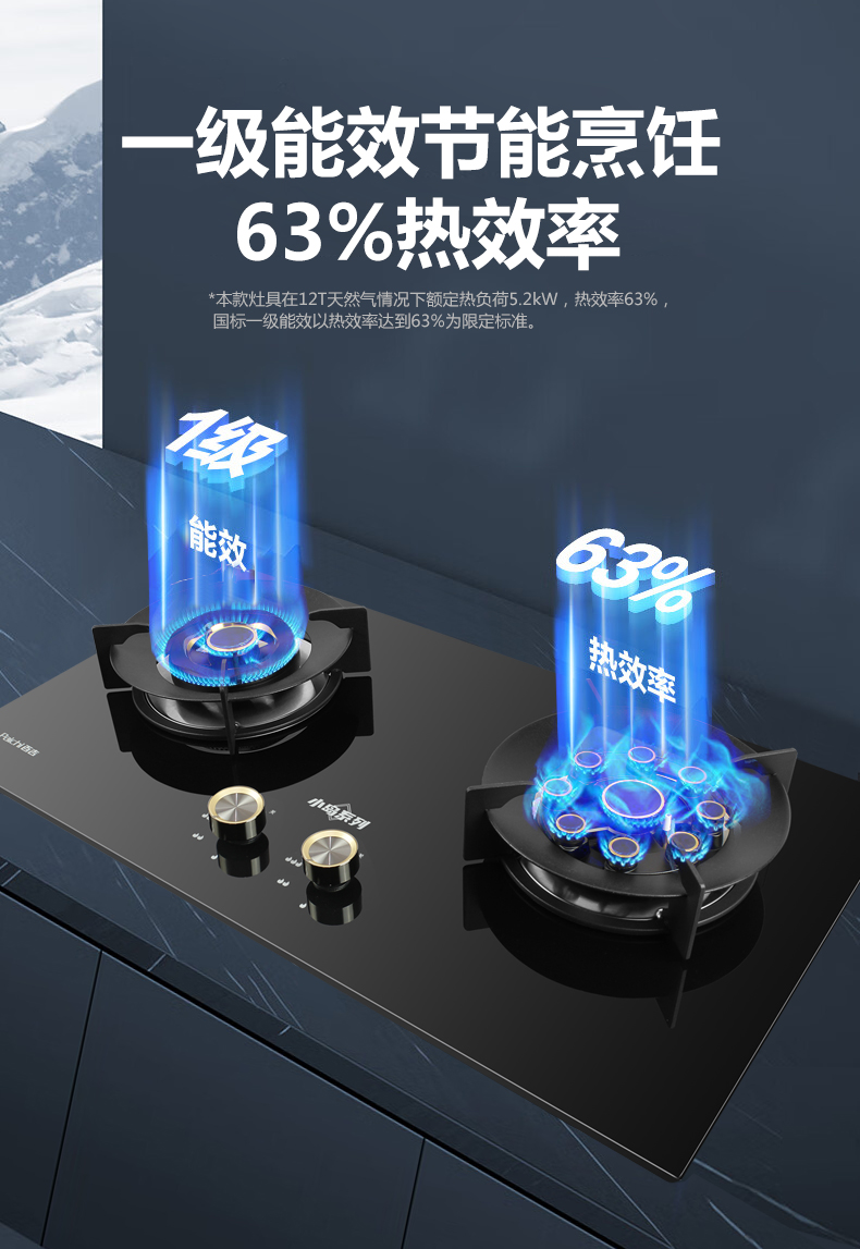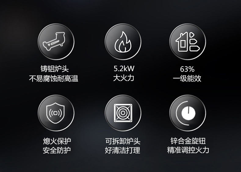 5.2Kw聚能猛火,63%熱效率一級能效,帶熄火保護